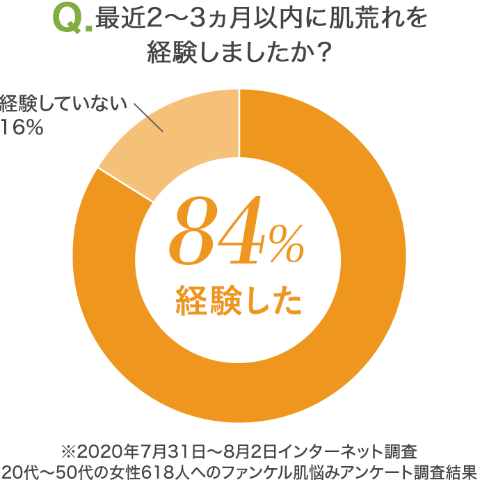 実はファンケルで肌悩みアンケート調査をしたところ、現代女性の実態として、マスク生活で肌荒れを感じている人がなんと"約8割"超!